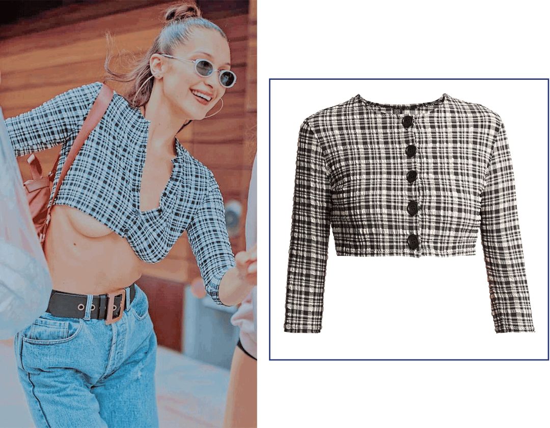 Lisa Marie Fernandez的格紋小襯衫也是Bella同款,解開兩顆扣子會更有風情。