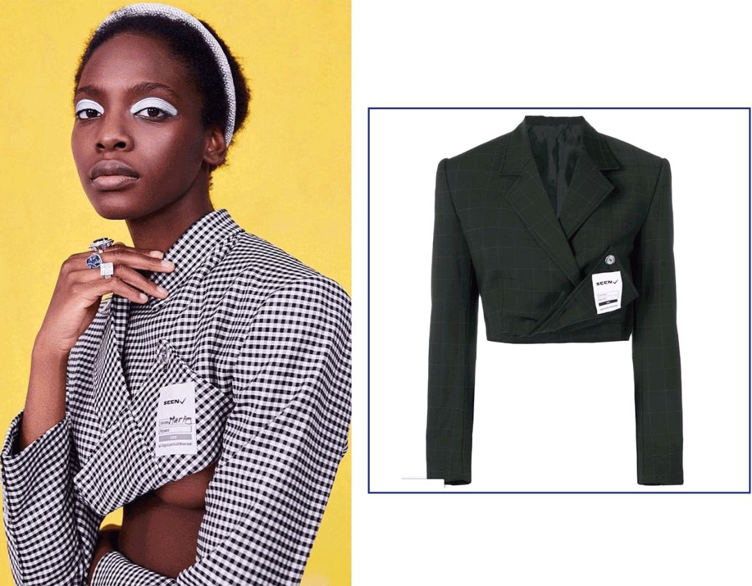 Seen Users這件不對稱的短外套也很有設計感,西裝式更多了一絲氣場。