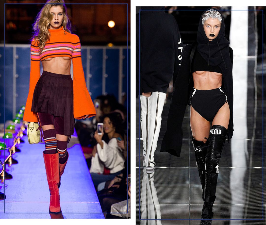 這個下面露胸的穿法有個名字,叫「Underboob」,在歐美明星那邊感覺已經成了一種趨勢,它的重點就是要選很短很短而且邊緣不收口的上衣。