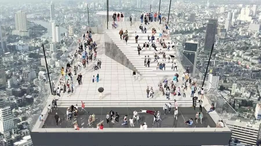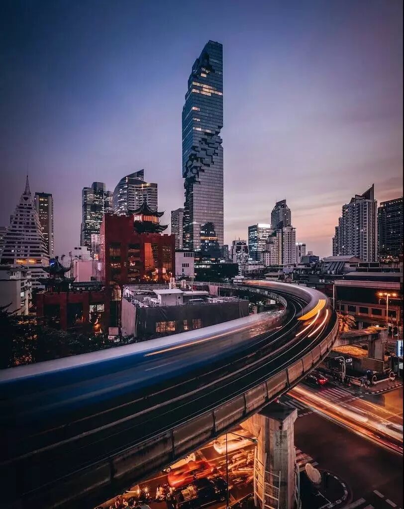 泰國第一高樓,扭轉的閃亮表面與凹凸錯落的懸空露台設計充滿著數位特效般的未來感,炫酷十足!74層的室內觀景廳擁有360度全景和巨大展覽牆,可觀賞到曼谷城市全景。