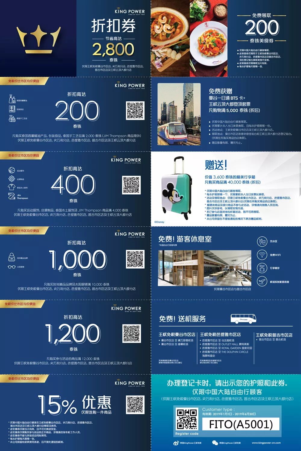1、網上預定享百程特別優惠:登錄官網https://www.kingpower-cn.com/結帳時輸入促銷代碼:A5001,即可在原有基礎上享受2%的專屬折扣。比如商品8折,輸入代碼後可享受78折!部分商品有折扣限制,具體以實際結算時折扣為準。