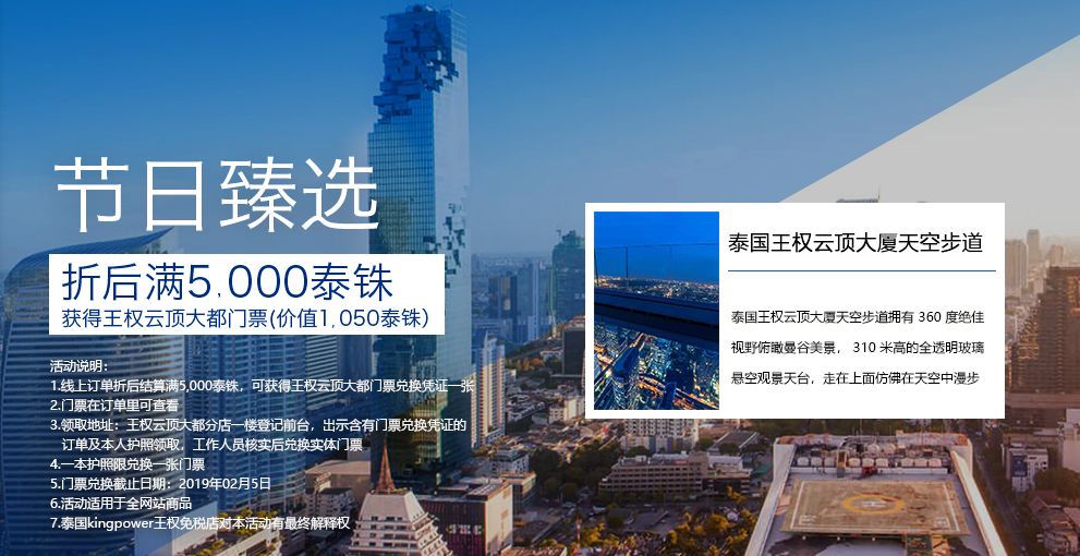 2、線上訂單滿額即贈雲頂門票:線上訂單折後結算滿5,000泰銖,可獲得王權雲頂大都門票兌換憑證一張(門票兌換截止日期:2019年02月5日)