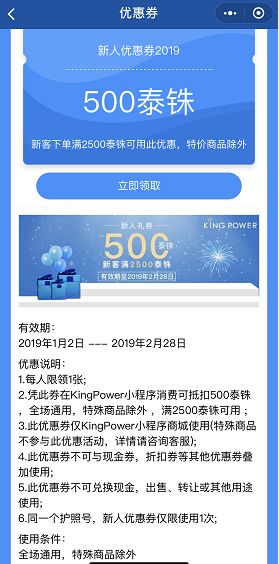 另外,新人還可以領取500泰銖禮券(有效期為2019年1月2日至2019年2月28日)