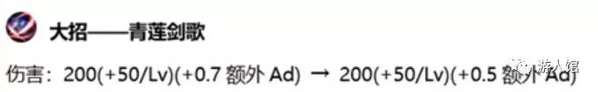 首先直接看看李白吧,大招的AD加成從0.7變成了0.5,讓他後期的傷害低了很多,本來李白的大招傷害就已經被削弱一次了,這次再削弱真的是連脆皮都打不死了,之後李白的打法可能會有所變更,不能像以前那樣全靠遠處刷大來打輸出了,有時候也要用1,2技能多在戰場打傷害才行。