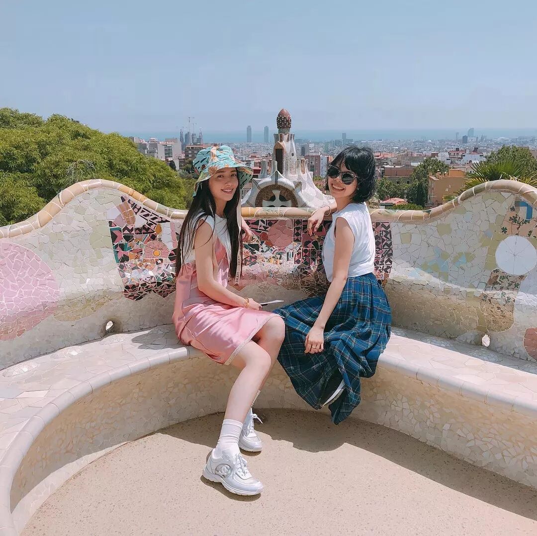 黑白灰經典又百搭,怎麼穿都不會出錯。郭碧婷的粉色裙子少女感十足,白色襪子搭配運動鞋多了幾分學生氣,十分減齡。