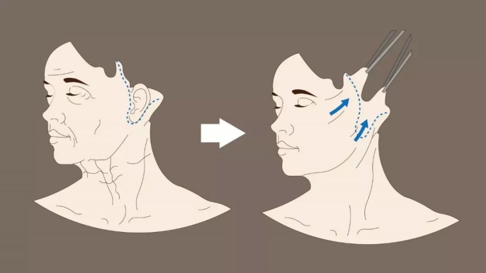 拉皮手術是將臉部鬆弛的皮膚向後向上提緊,切除多餘的皮膚,同時將臉部深部筋膜層也拉緊,切口多選在髮際內,耳旁或耳後隱蔽處,效果也是杠杠滴。