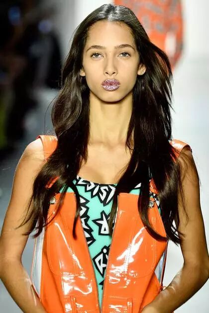 在這場發布會中,更drama的還有模特「金碧輝煌」的唇部妝容,果凍代言,你值得擁有。