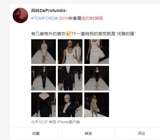 在今年紐約春夏時裝周第一場TomFord秀後,網友評論:「TF一直給我的感覺就是…優雅地騷」