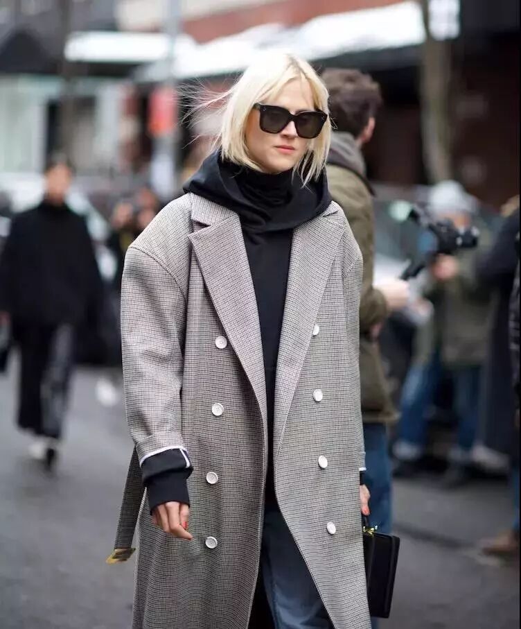 因為高領毛衣對於短、粗脖子非常不友好,穿上雖然保暖十足,但是瞬間會沒脖子顯臉大。所以真正的百搭毛衣其實應該是煙囪領,也就是俗稱的「半高領」。