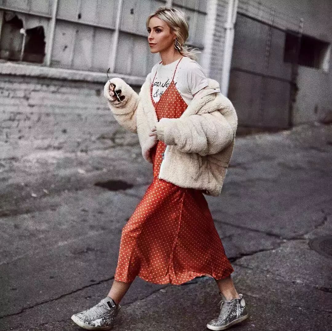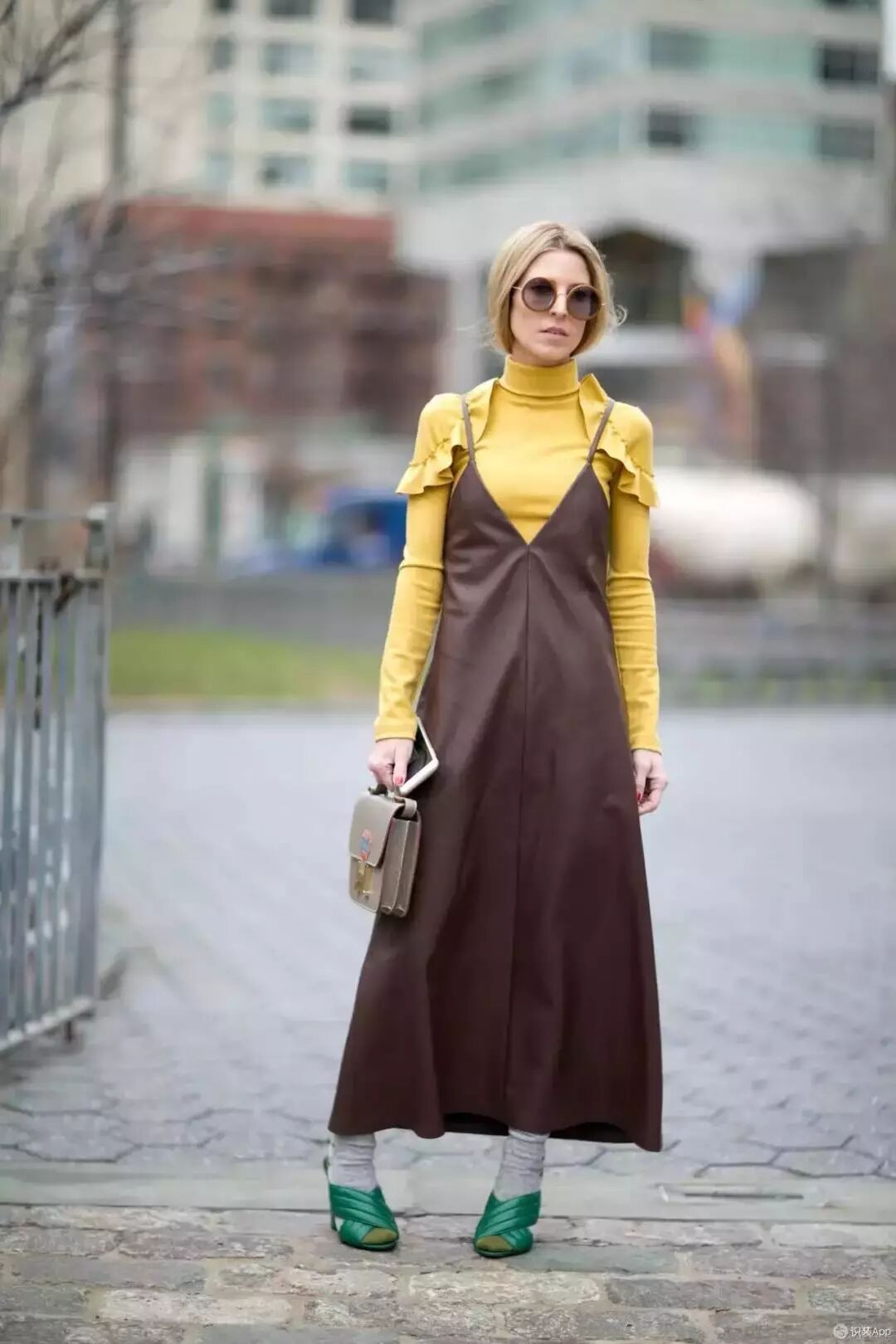 小仙女們別慌!當然不可能單穿吊帶裙啦,是和其他內搭疊穿哦~因為普遍的內搭都是上衣+褲子,看久了難免疲勞,而且褲子穿得多了顯胖,穿的少了會冷,都不如裙子來的實在~