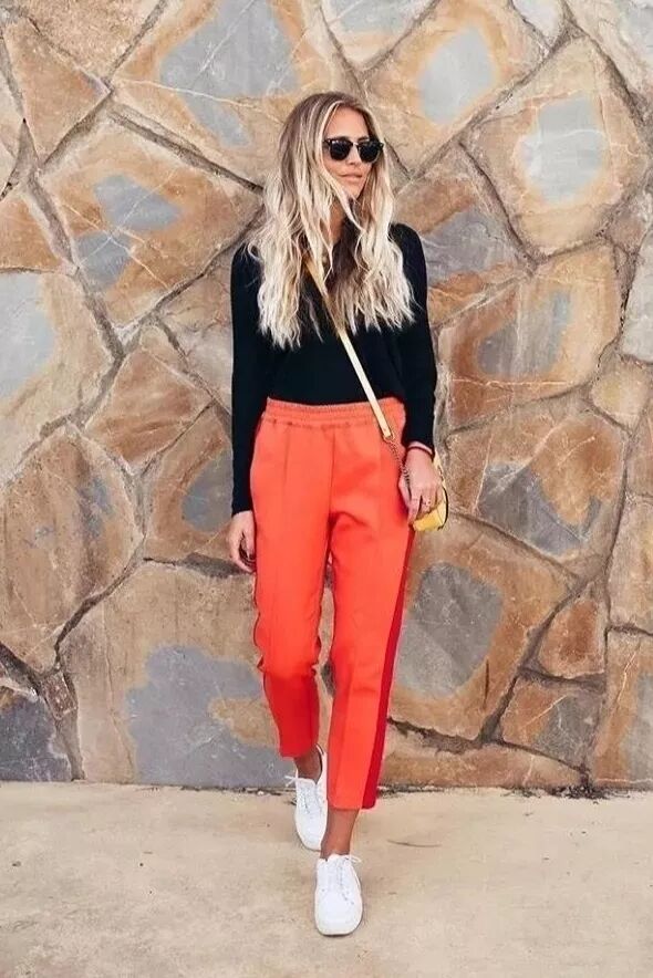 遠離臉部,可以削弱柿子色的不友好。避開圍巾、上衣等,柿子色的下裝完全不影響你的膚色;V領柿子色內搭白色,整個人精神翻倍!
