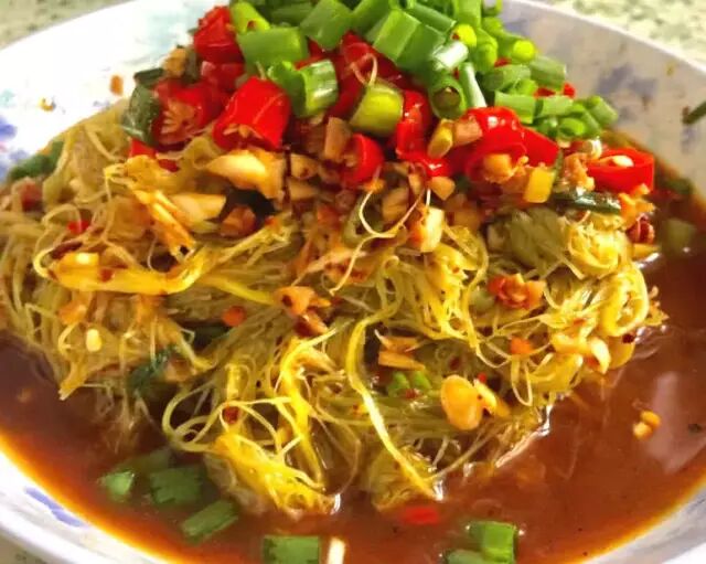 撈出來瀝水放在乾淨的容器中,順手把大蒜去皮洗洗乾淨拍碎,將大蒜,鹽,雞精,香油,生抽,辣椒油,放入玉米須上,均勻的攪拌,緊接著將蔥花和小米椒放上面,一道美味的涼拌玉米須就做好了,看起來簡單美味,即使找到客人也能拿得出手。