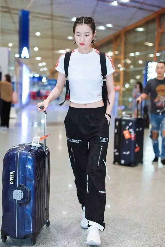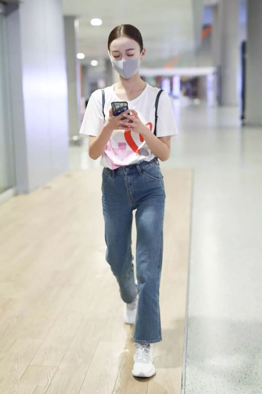 在機場的打扮就更是普通了,為了將衣服紮進褲子里,讓腿看著更長一點,這上身都勒出贅肉了吧,這腿看怎麼還也有點粗呢!