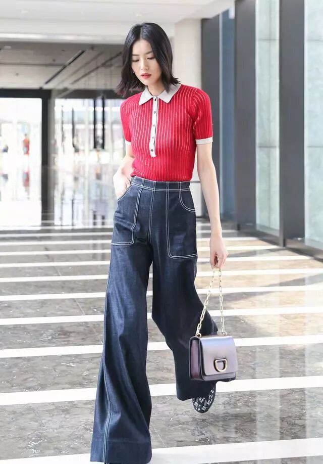 相比較而言,劉雯隨便穿一穿就是時尚界的標桿了,這紅色的polo衫穿的好好看,搭一條闊腿長款,氣場十足啊。