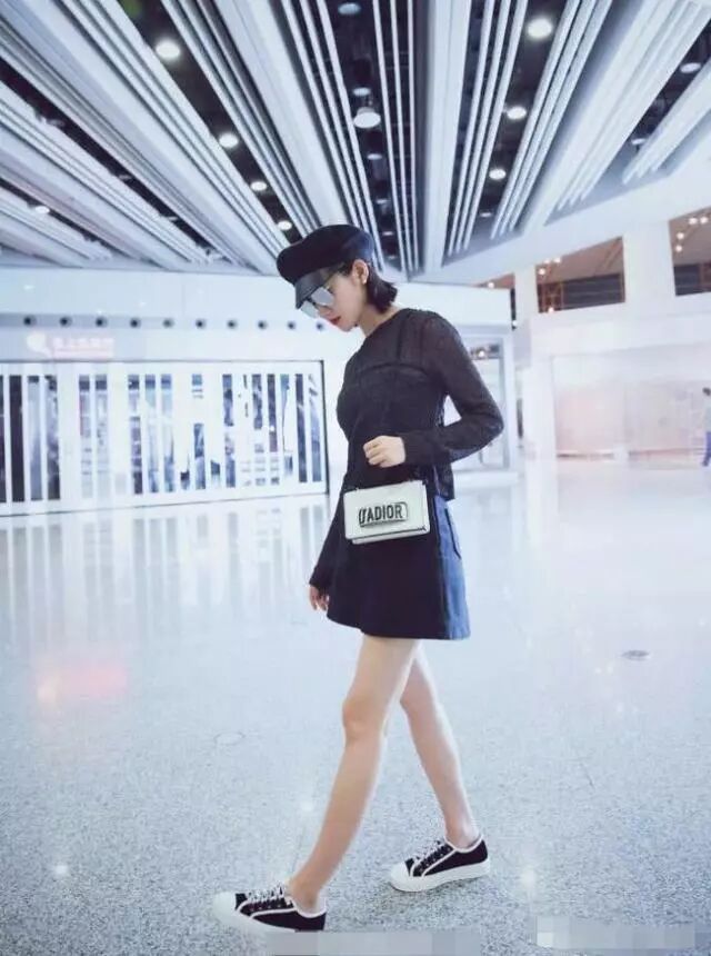在機場的景甜,一身牛仔裝扮很時髦,只不過下身搭的短款也是超短的,短到口袋都露出半截了,她為了秀腿也是很拼的。