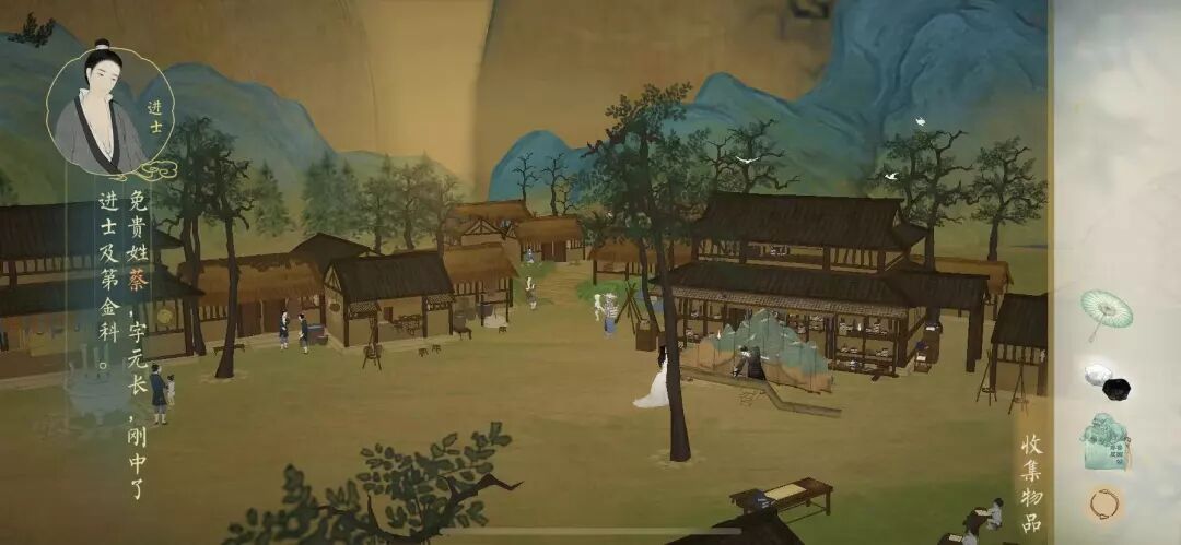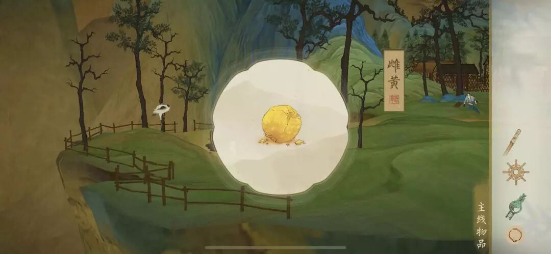 在遊戲的內容上,《繪真·妙筆千山》也將《千里江山圖》的一些彩蛋放在了其中,比如當玩家遇見希孟之後,希孟會讓玩家去找顏料,但是村莊里面並沒有顏料,最後找來的是一個道長的雌黃。