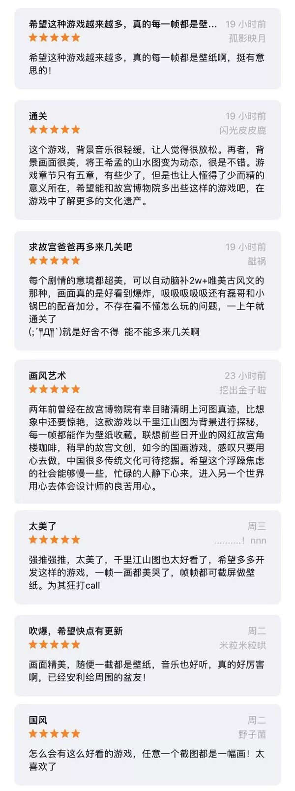 我將這款遊戲推薦給了同事,他說這款遊戲美得令人窒息。的確,《繪真·妙筆千山》是以故宮博物館館藏宋代名畫《千里江山圖》為創作藍本,作為中國十大名畫之一,豈能簡單的用「美」來形容?