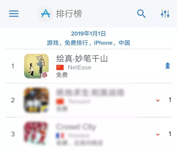 1月1日,網易遊戲在App Store上線的《繪真·妙筆千山》毫無懸念的拿下了下載榜第一。
