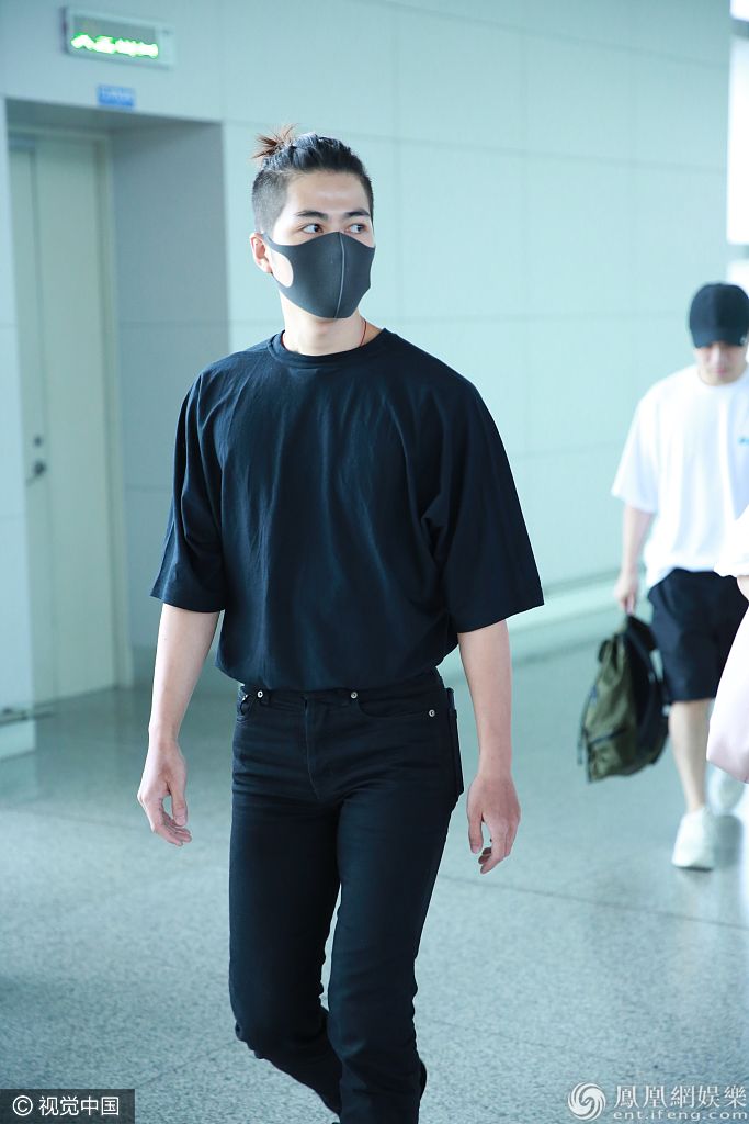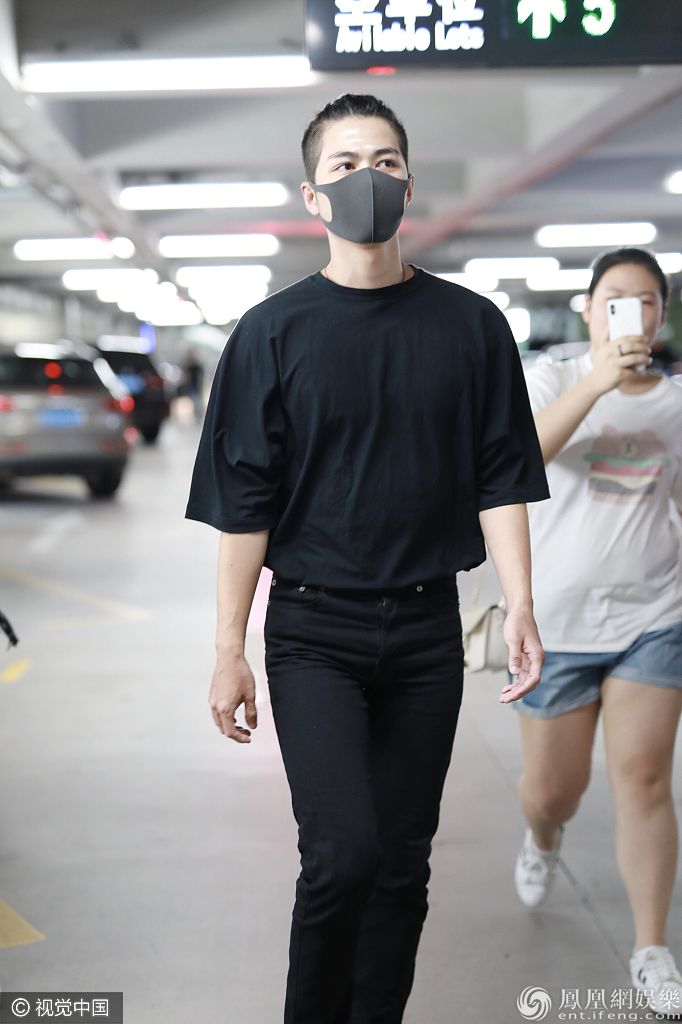 2018年8月18日,陳學冬全黑LOOK現身機場。