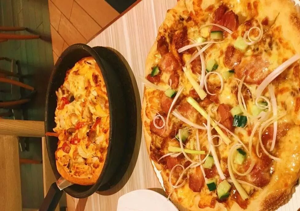 當時還沒正式在一起。去她學校門口的貓眼咖啡吃的披薩,碰到好基友,被問:「馬子」?