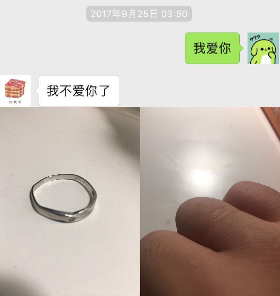 我帶著哭腔讓他起來,他偏不,他要等一個答復。最終我說了好,戴上了戒指,他才站起來。