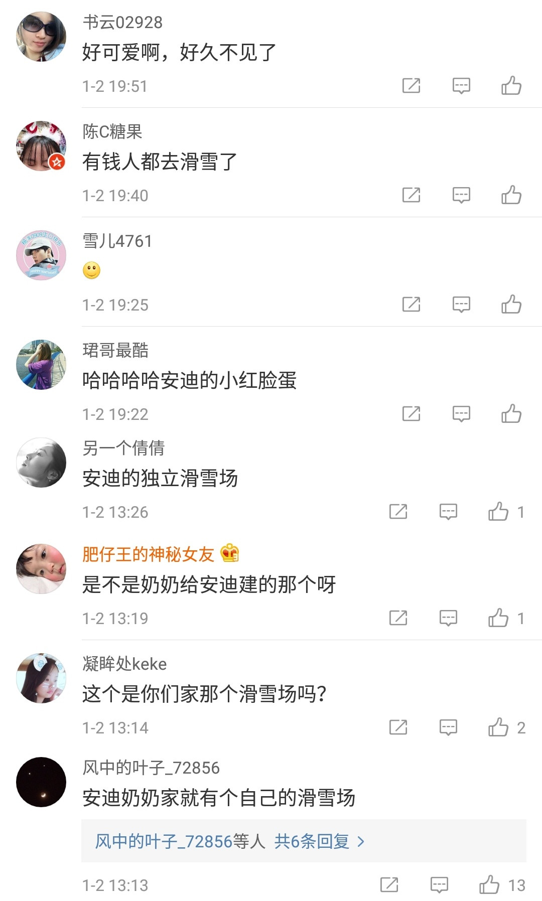 也有網友評論詢問黃聖依「去哪里滑雪了」,「是不是奶奶給安迪建的那個呀」,「這個是你們家那個滑雪場嗎」?