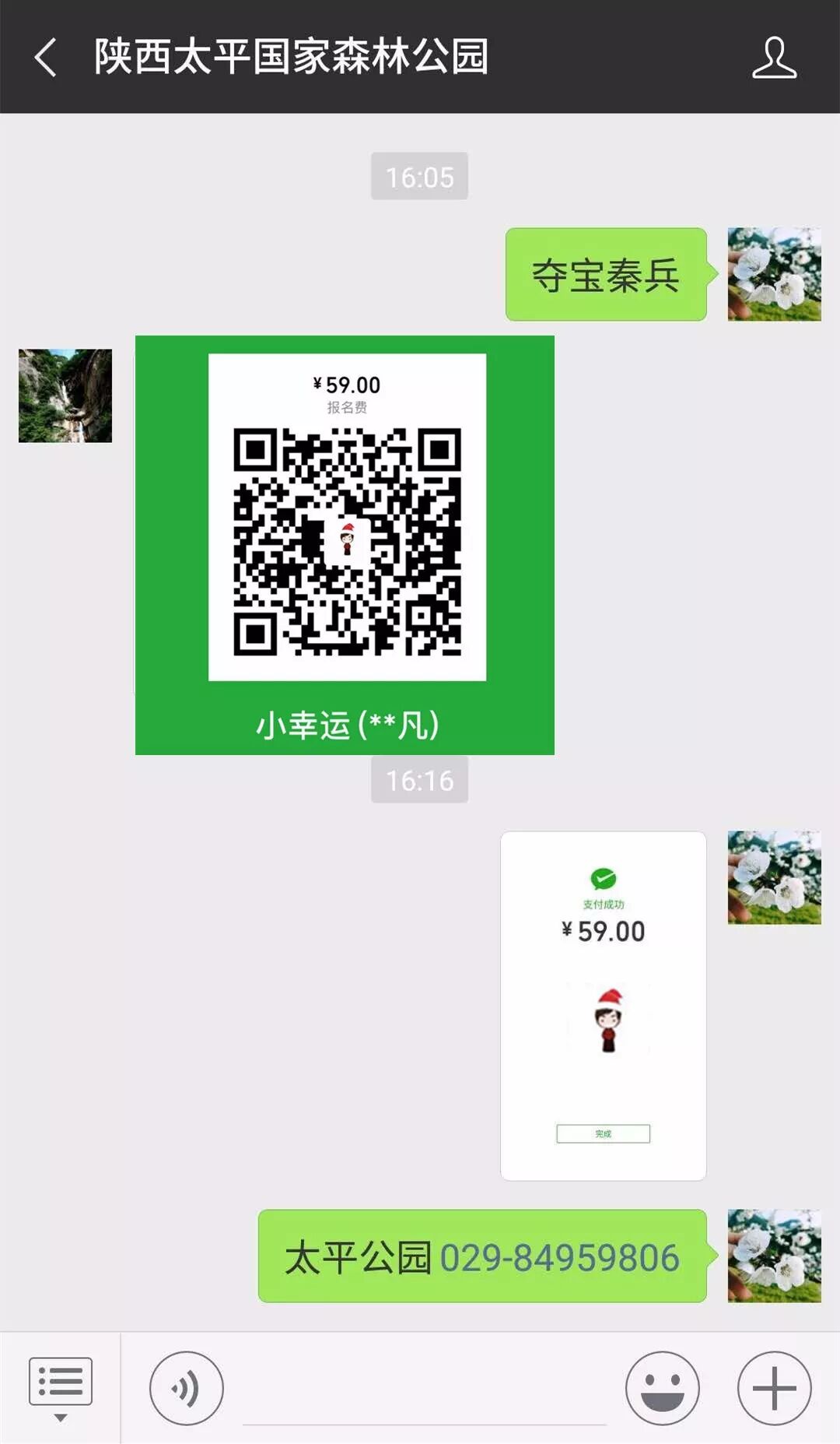 (2)回復關鍵詞「奪寶秦兵」,並掃描「付款碼」,完成繳費;