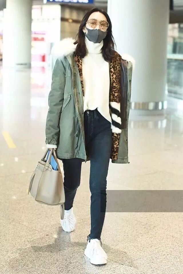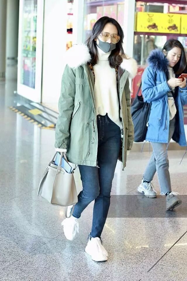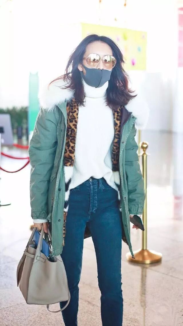 這是王鷗的機場照,照片中的她看起來臉色非常的蒼白還沒有氣色的樣子了,穿了一件綠色的羽絨服,看著很精致了