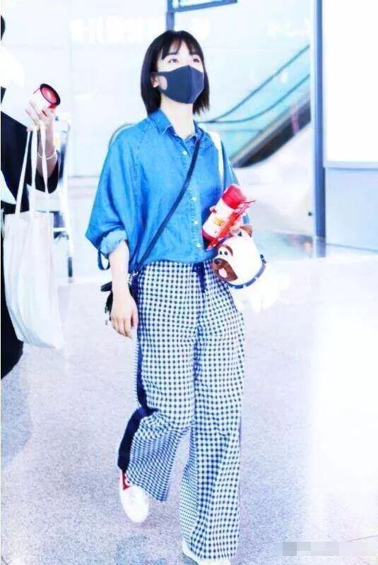 沈月上半身穿了一件藍色的襯衫,非常森系,是棉麻質地的料子,非常舒服。下半身搭配一條黑白點點的闊腿褲,遮住了小粗腿。