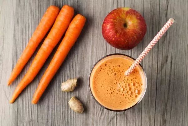 1、將胡蘿蔔洗淨,蘋果去皮切塊放入榨汁機;