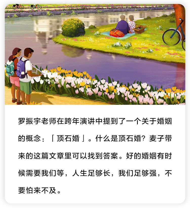 羅振宇老師在跨年演講中提到了一個關於婚姻的概念:「頂石婚」。