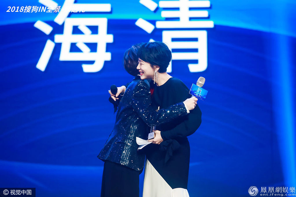 陳魯豫,海清擁抱。