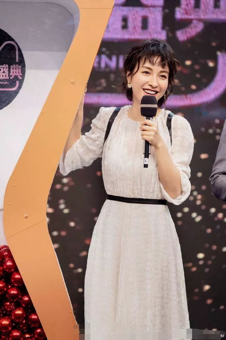 吳昕穿著的這一條白色的蕾絲裙子看上去非常的優雅,她這條裙子腰間很特別是一條黑色的絲帶來凸顯腰線。是一個精致的女孩呢。