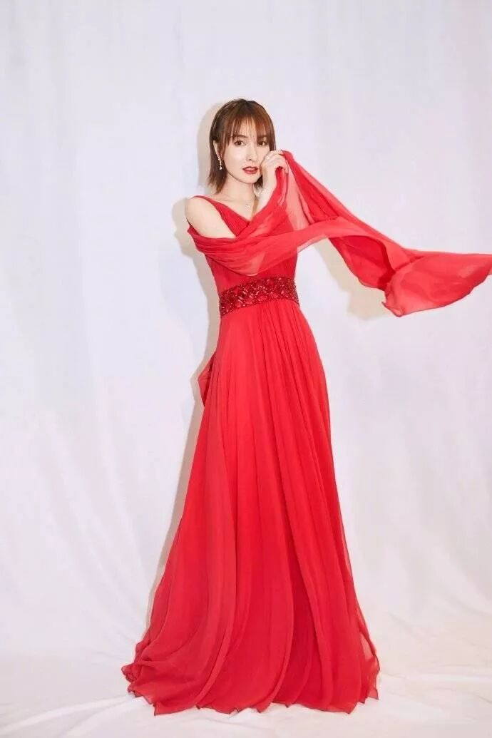 吳昕穿著一條紅色的裙子,真的是非常的優雅。這種顏色就像新年紅紅的特別火熱,火熱的紅色襯托得吳昕的肌膚更加的白里透紅。