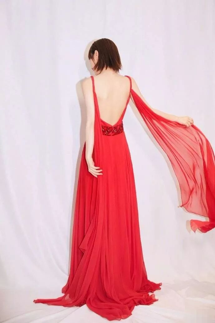 這條裙子吳昕,還揮舞著兩條紗呢,她轉過來更加的優雅,讓人很驚艷了,這條裙子是露背裝,露出吳昕漂亮的背。
