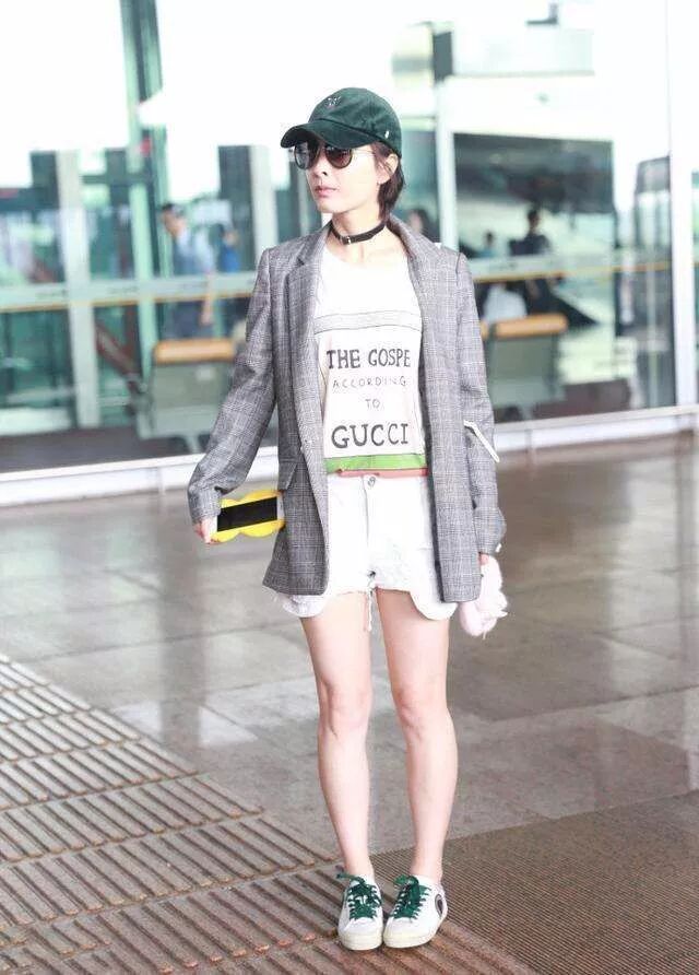 吳昕的內搭穿了一件古馳的印花T恤,下半身搭配了一條白色的牛仔短褲。最特別的是他在里面那麼休閒的情況下,在外面搭配了一件灰色的小西裝。