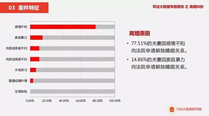 數據顯示,77.51%的夫妻因感情不和而離婚。