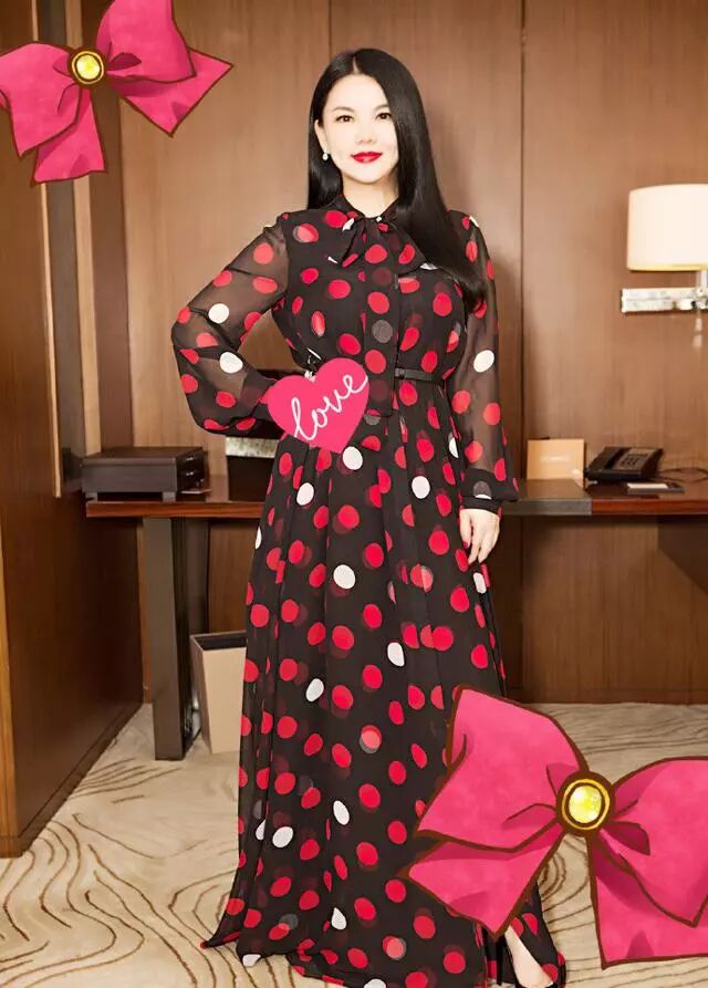 李湘身穿黑色薄紗波點裙成熟優雅,黑色顯瘦,紅白兩色的波點更顯甜美。裙子長到腳背的位置,輕盈飄逸,溫柔動人。寬鬆的袖子套在手臂上,隱隱露出白皙的皮膚,更添小性感。