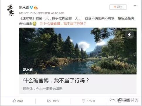 來到2018年,緊張準備著公測大事的項目組也將演員的自我修養詮釋到極致。首先是,丁磊「被開除」事件的策劃。在《逆水寒》準備公布最終開測時間的前三天,網易CEO丁磊在接受採訪時無意間泄露了遊戲的開測日期。面對老板的如此「爆料」,項目組當然不會放棄任何一個能當戲精的機會。《逆水寒》官博隨即發文「辟謠」:網易公司並無叫「丁磊」的員工,此消息來源不實,已轉交律師處理。