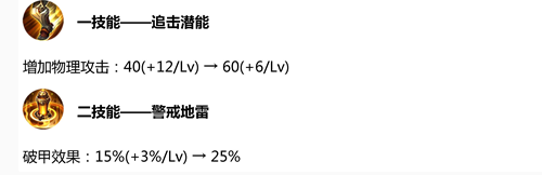 黃忠1技能傷害和2技能破甲效果前期得到提升,後期減少。