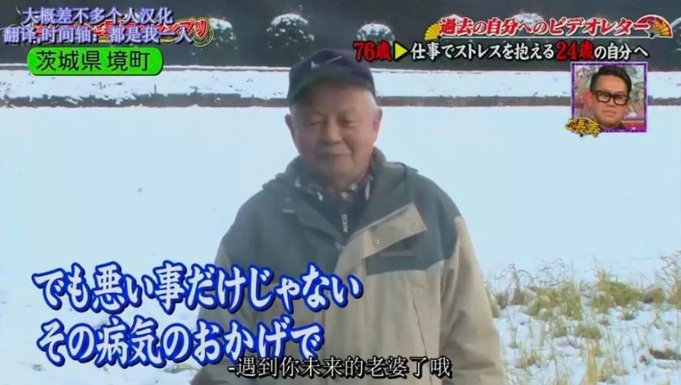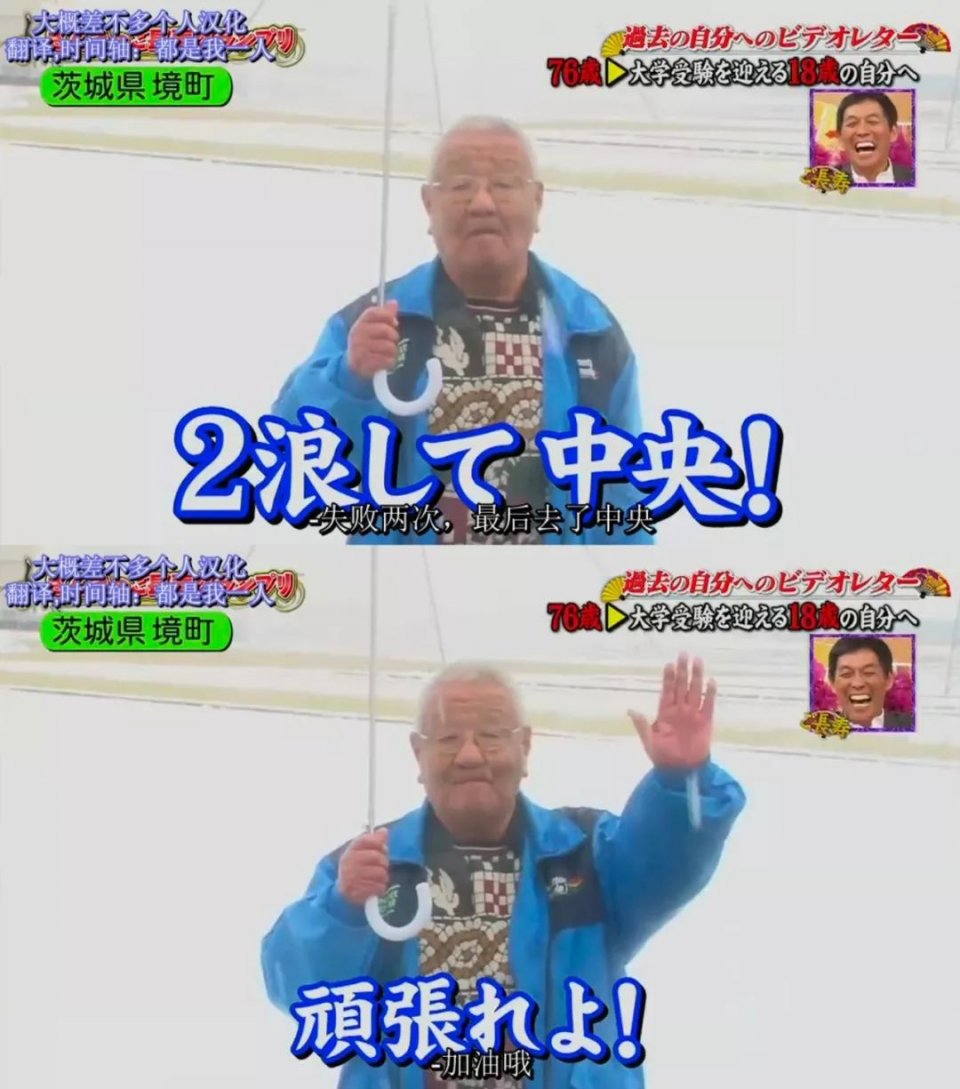 第二位喊話的是76歲的秋元秀夫,對即將要參加高考的自己透露:「到時候你會參加兩場考試。」