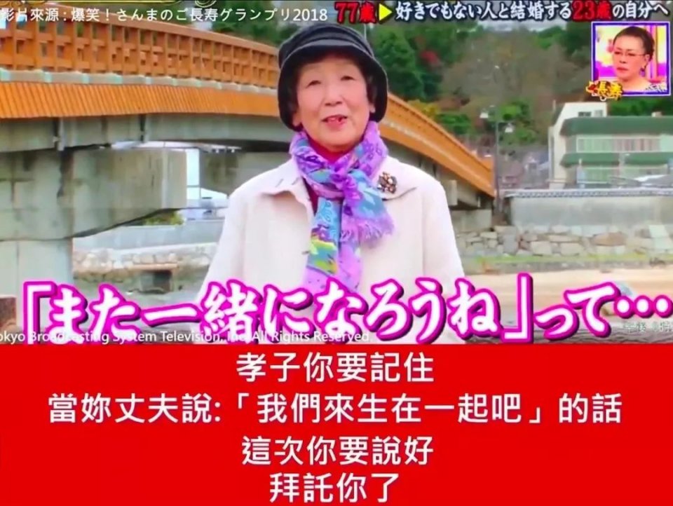 在這篇視頻信中,77歲的孝子對24歲的孝子拜托道:「如果丈夫說要和你來生也在一起,請你一定要說‘好’。」