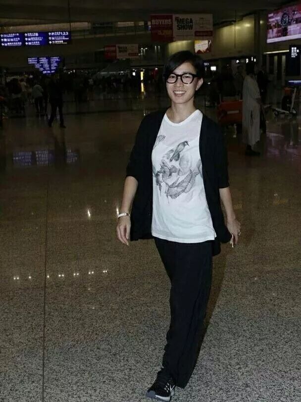黑色和白色真的是非常經典的配色了,只是佘詩曼這樣搭配稍微有點顯老了,戴上一副眼鏡後看起來更加的有點上了年紀了
