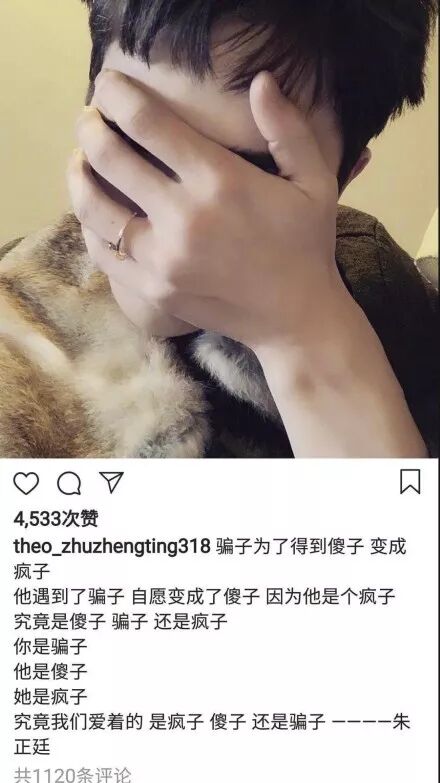 朱正廷ins里的「青春傷痛文學」傳開後,粉絲們還是在一個勁兒挽尊,說朱正廷「太中二了」「很可愛」之類,