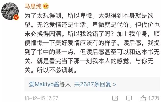 並發了條疑似喊話馬思純的微博。
