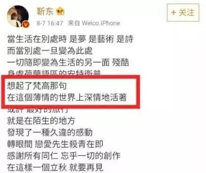 不過大家的注意力都跑偏了,只get到其中的那句「在這個薄情的世界上深情地活著」並不是梵谷說過的,而是另有其人。