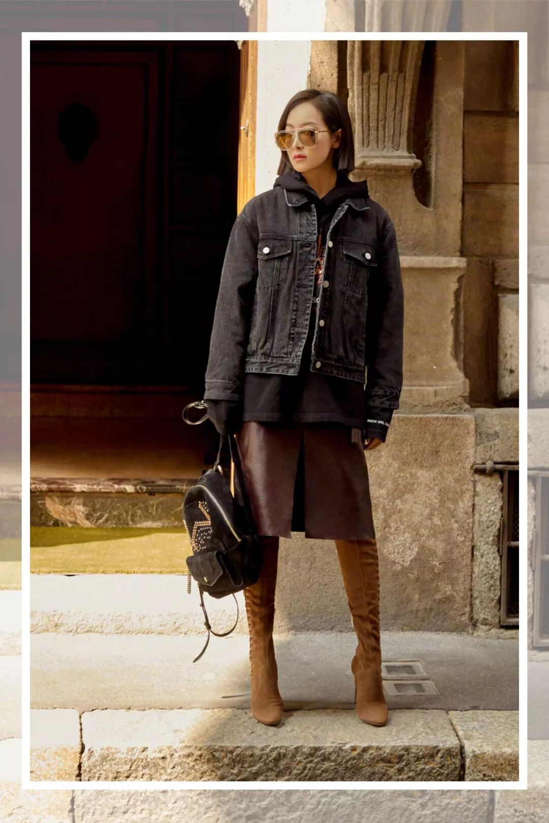隨便一件衛衣單品配上過膝靴,無論是搭配短裙還是短褲,都很cool,娘man中和,款式呢最好選可以蓋住屁股的oversize款。