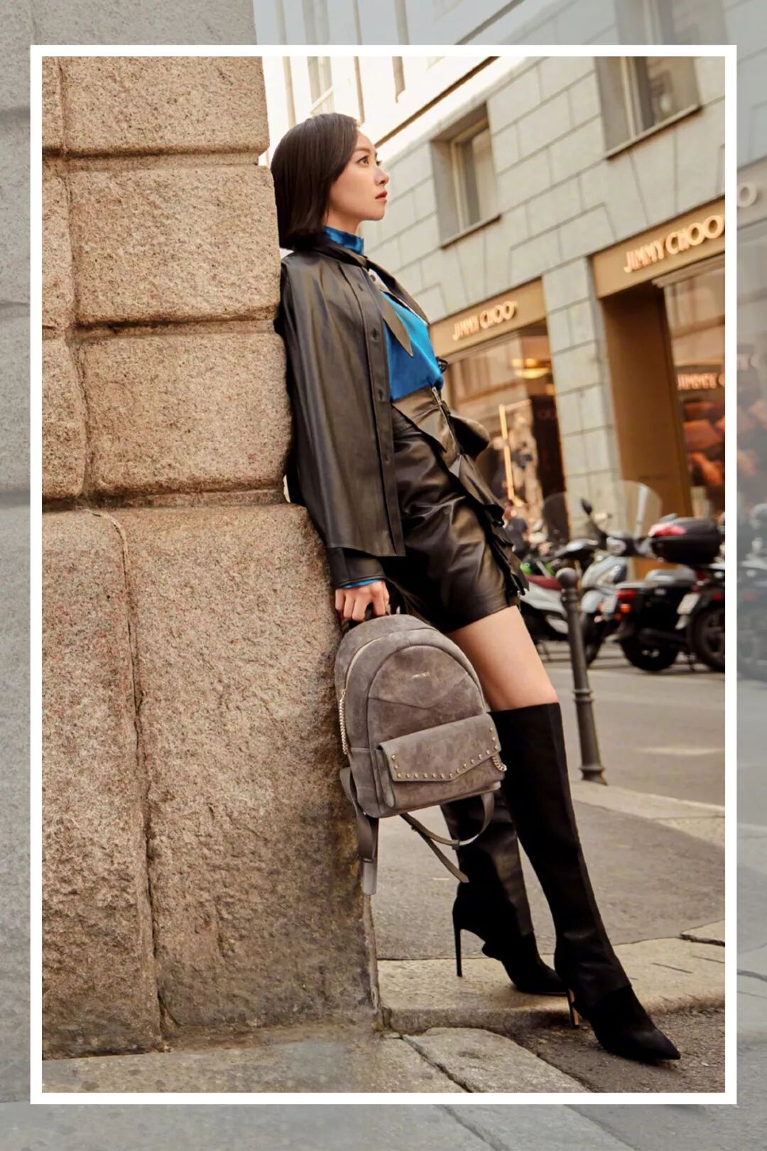 襯衫+皮裙的組合,娘man平衡。舒適優雅的過膝靴瞬間讓宋茜的造型擁有溫度又不失性感迷人。