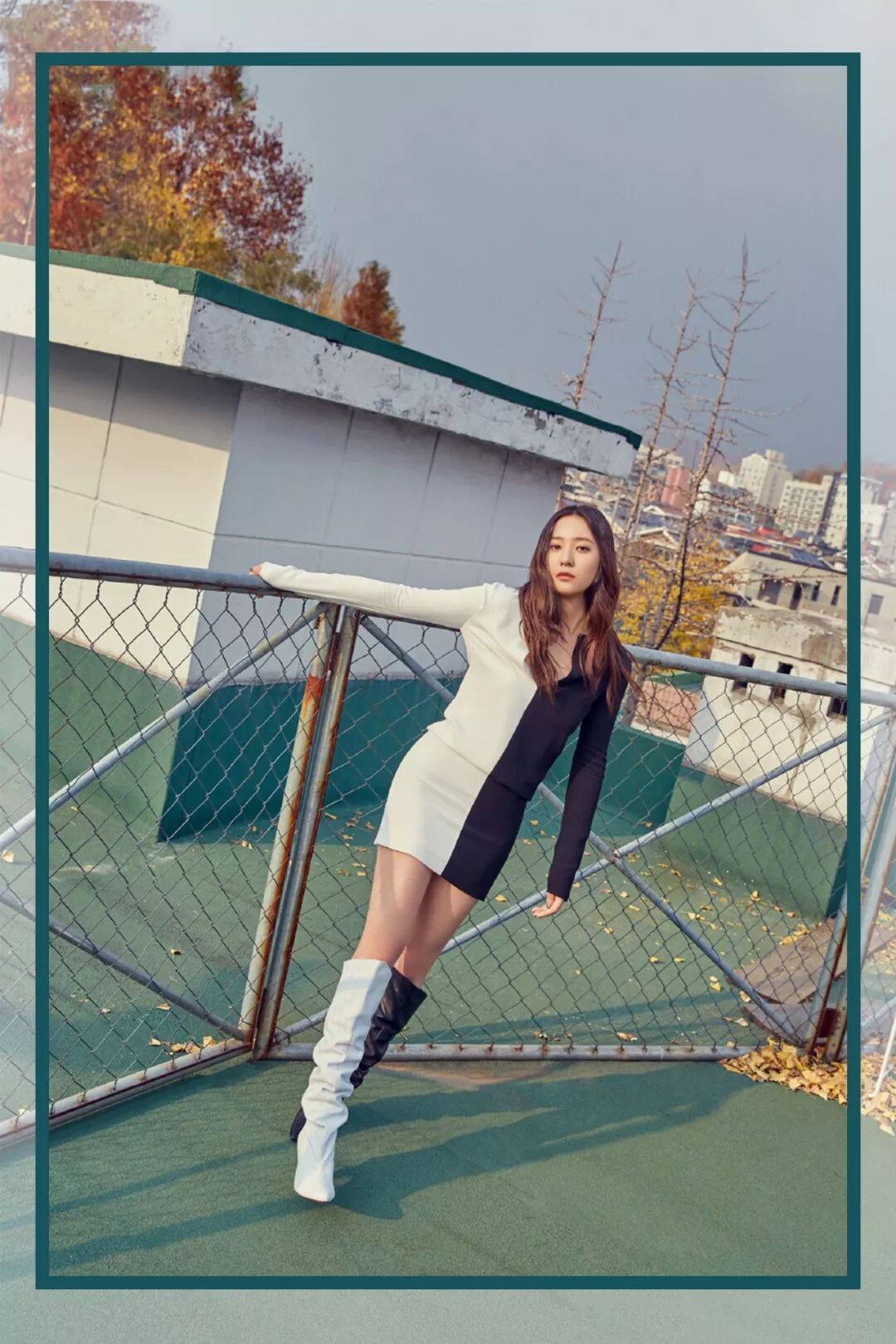 wuli秀晶身著黑白同色系連衣短裙+過膝靴,意外的好看!