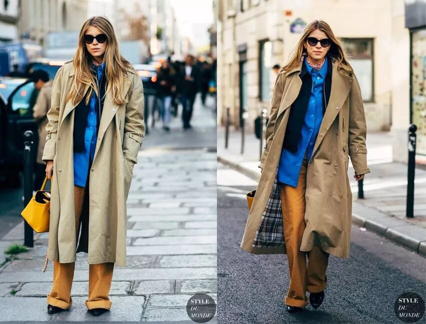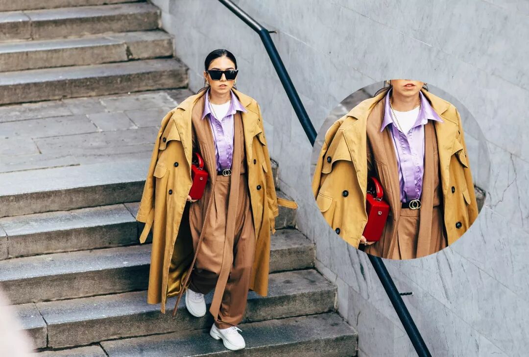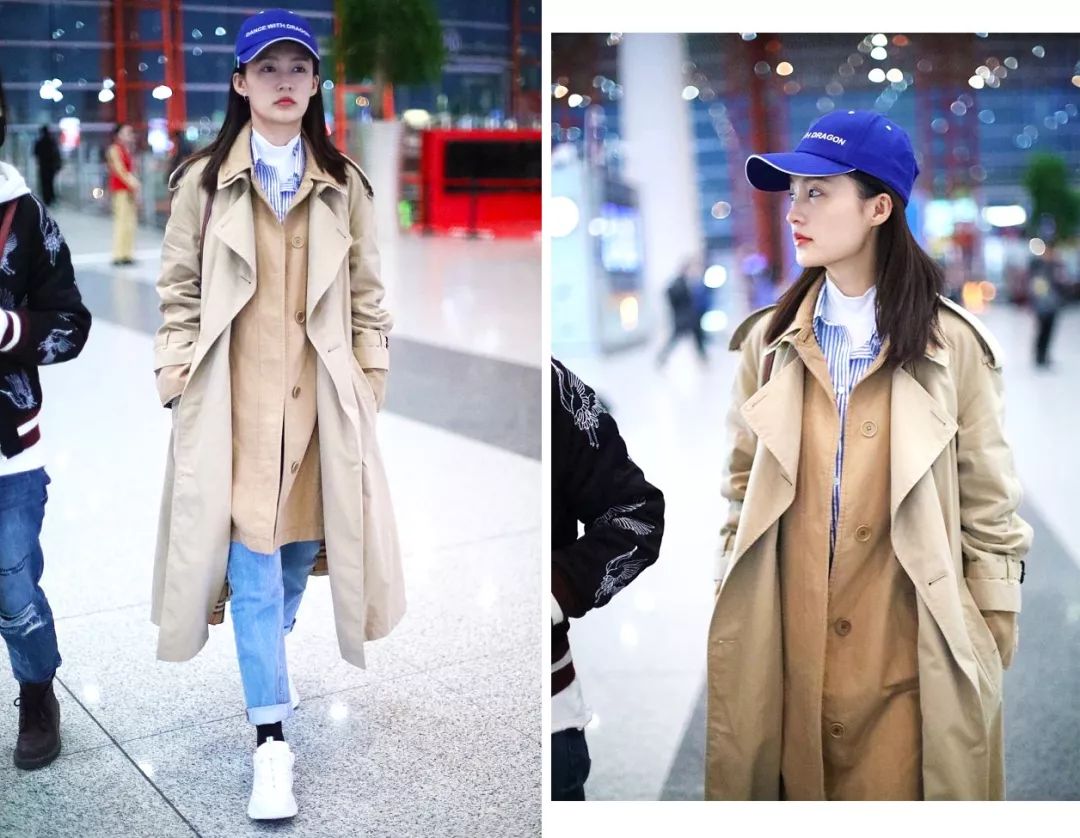 李沁用了高領衫+兩件襯衫+風衣,打造出輕薄的四層疊穿,有序而不凌亂,非常值得借鑒~▼